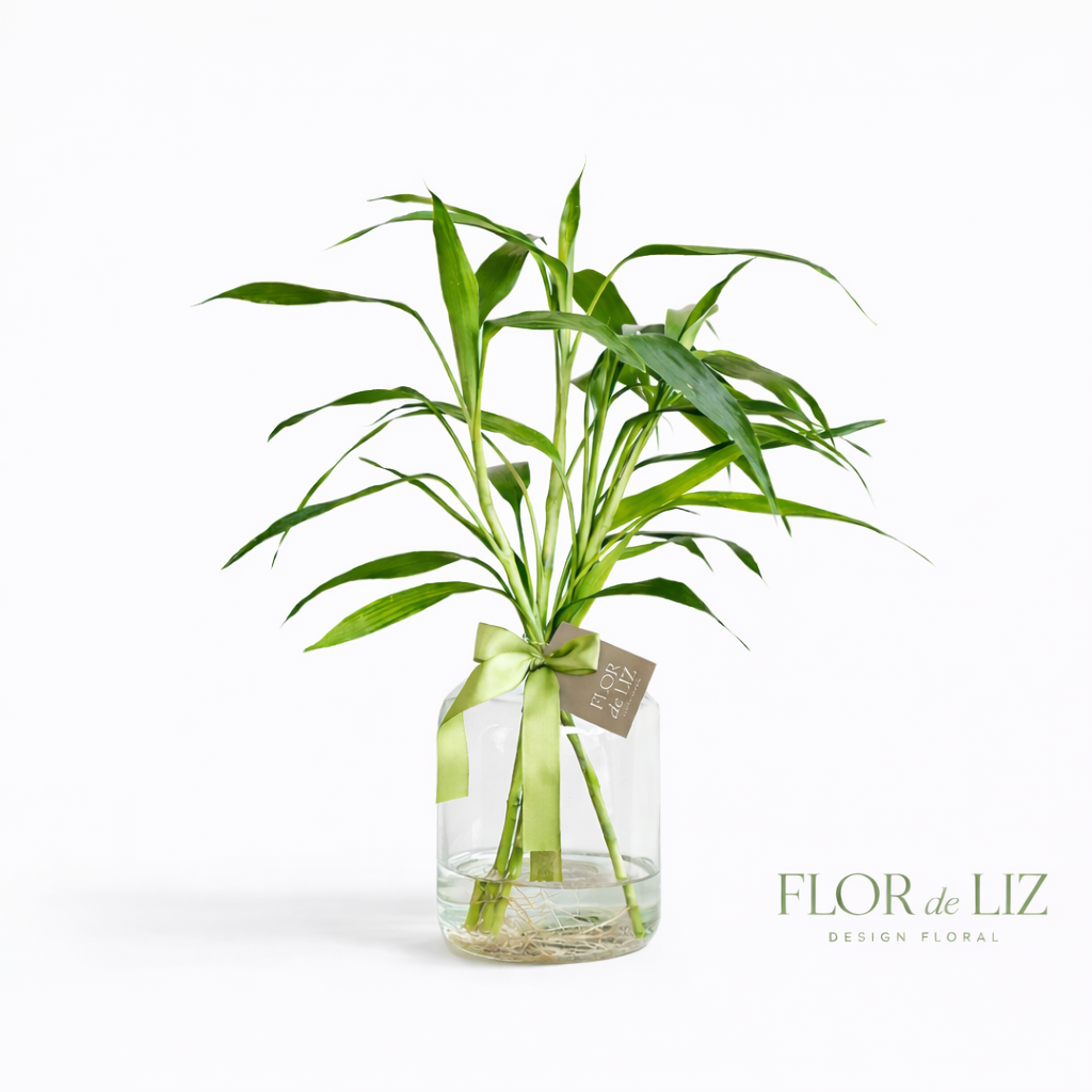 Leve prosperidade, equilíbrio e elegância para seu ambiente com nosso Bambu da Sorte em vaso de vidro, composto por 3 ou 4 hastes naturais cuidadosamente selecionadas.